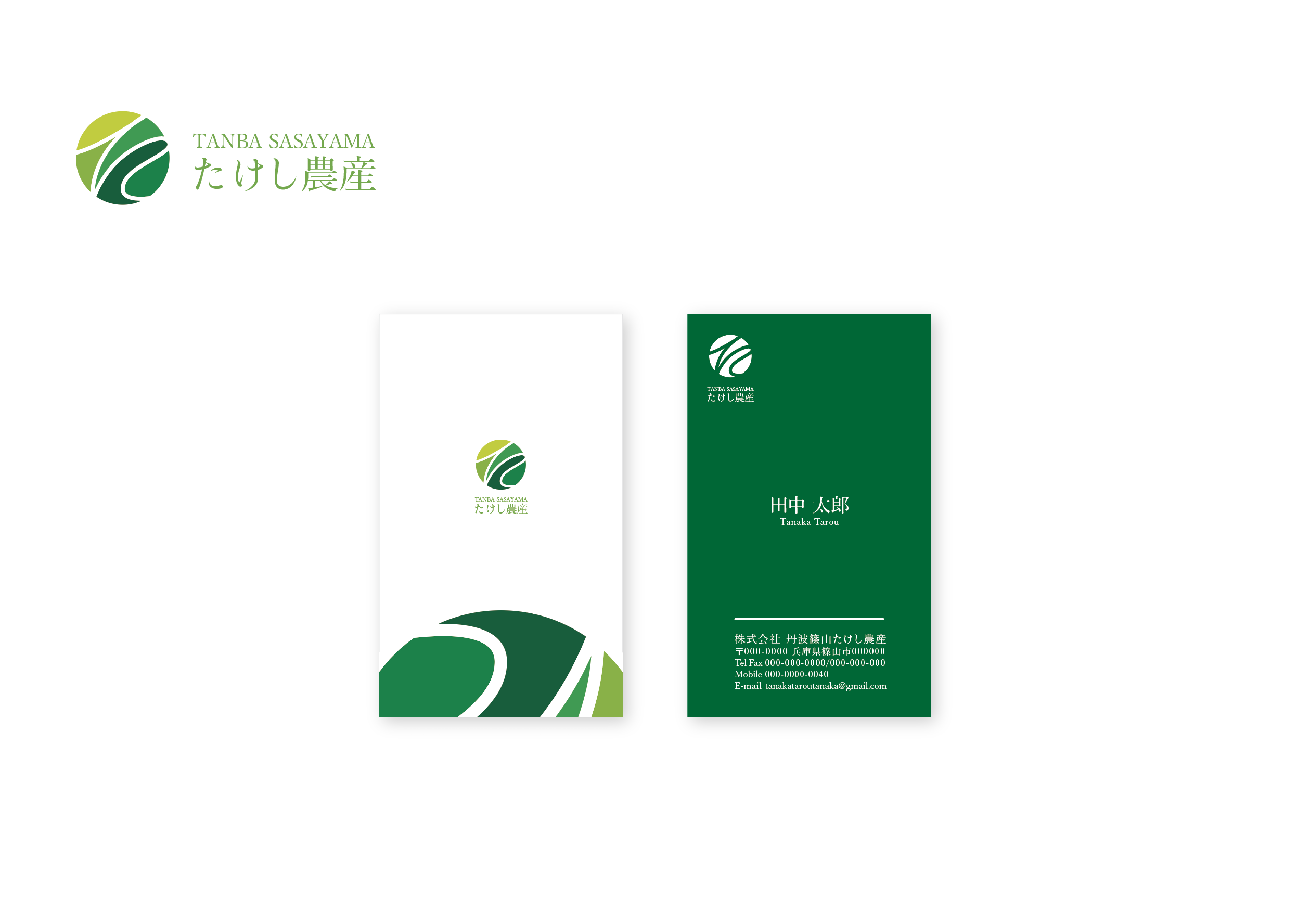 丹波篠山たけし農産ロゴ、名刺 農業、自然をイメージしたロゴです。 た+田