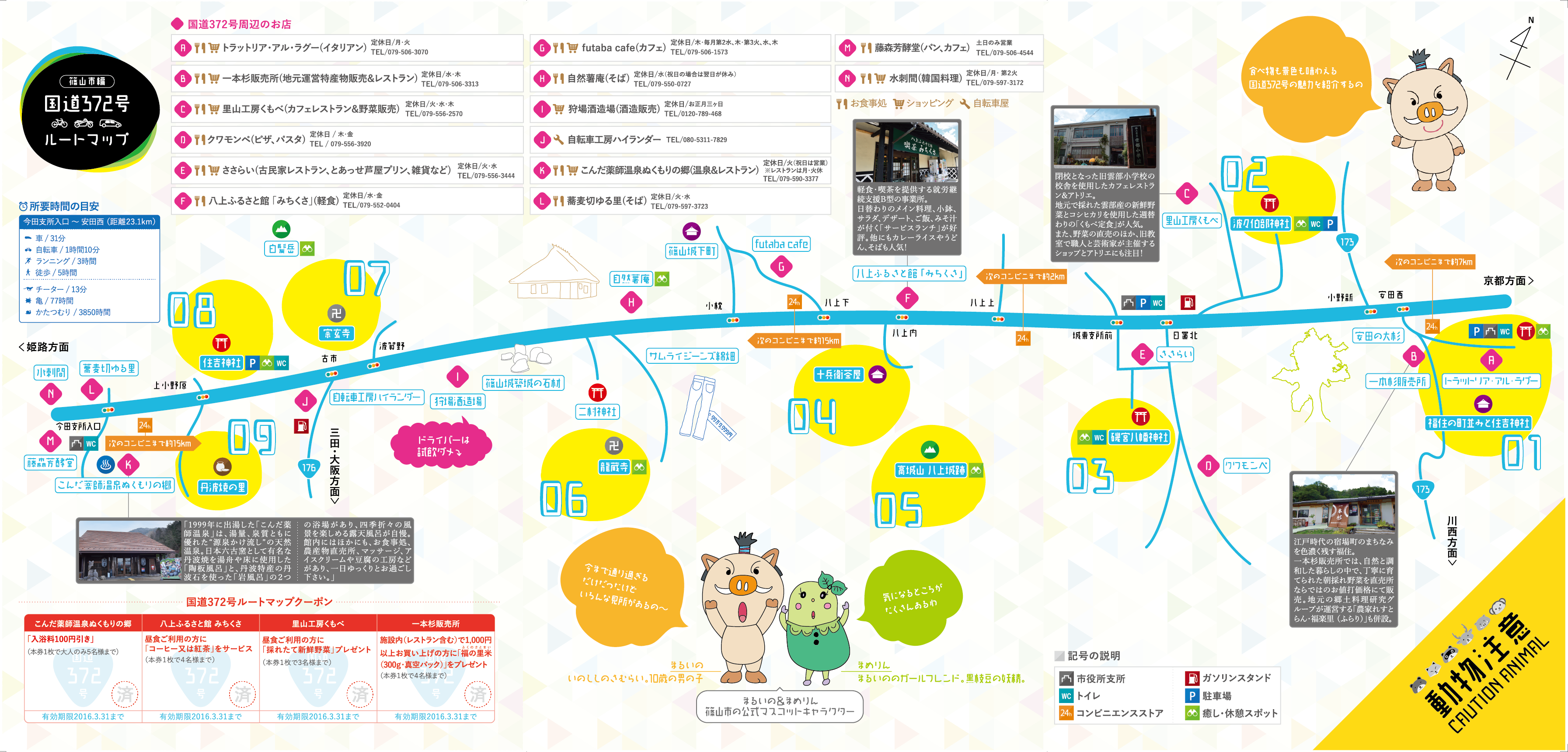 篠山市を横断する「国道372号線」の周辺マップを作成